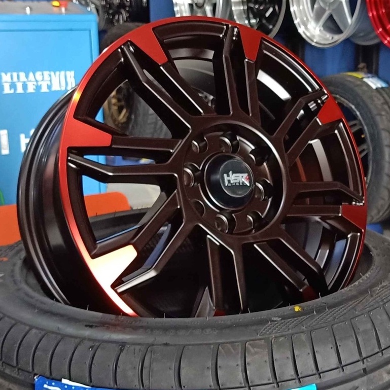 Modifikasi velg mobil honda mobilio + velg mobil pro racing (5367) r17 x 7,5/8,5 | h8 pcd 100/114,3 | et 40/38 black polih + red line + ban mobil accelera ph.